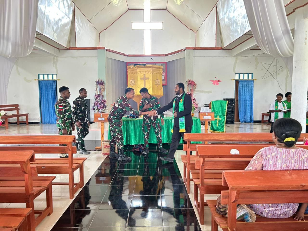 TNI dan masyarakat beribadah bersama di gereja, menyatukan iman dan menciptakan rasa kebersamaan yang menguatkan.