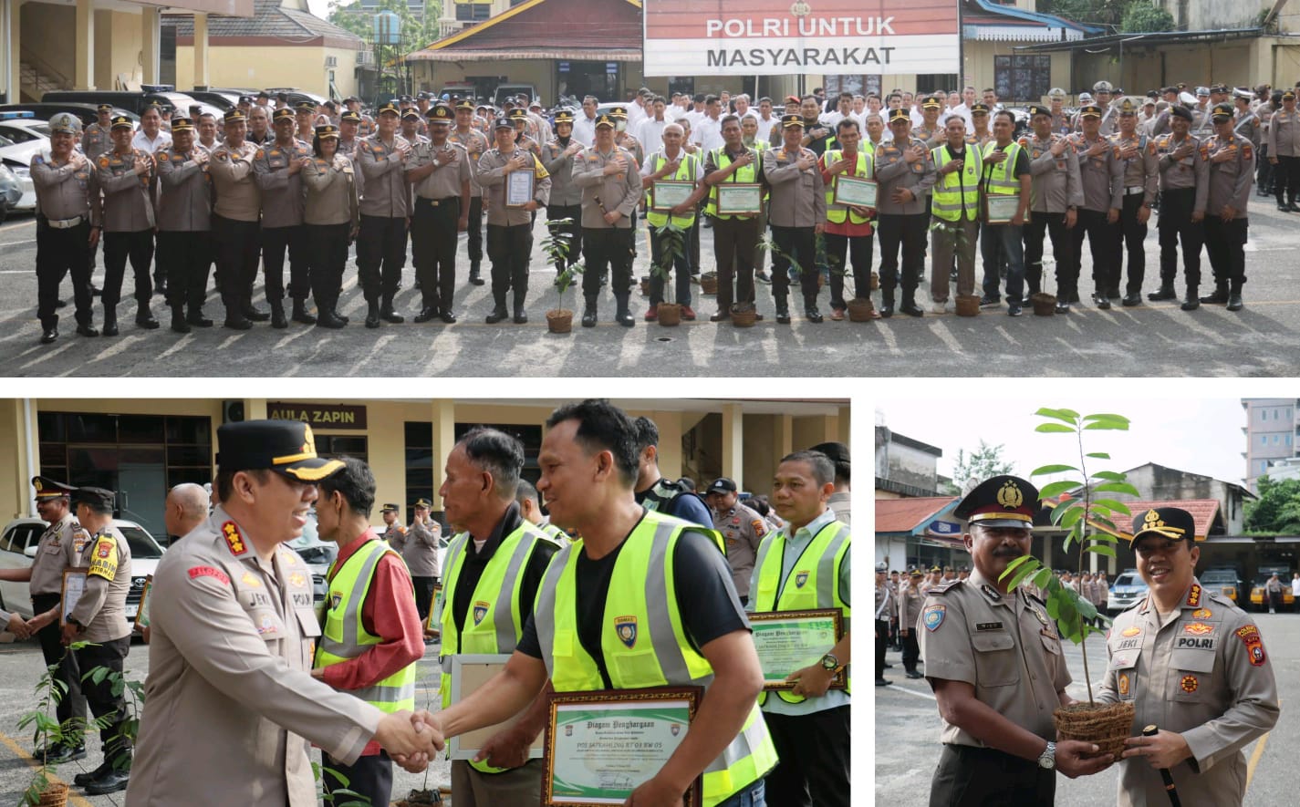 Selain itu, Aiptu Azwar Anas, Bhabinkamtibmas Kelurahan Labuh Baru Barat Polsek Payung Sekaki, menerima piagam penghargaan dan bibit pohon atas dedikasinya dalam pembangunan Dapur SPPG (Satuan Pelayanan Pemenuhan Gizi) — fasilitas terpusat untuk produksi Makan Bergizi Gratis (MBG) di wilayah hukum Polresta Pekanbaru.