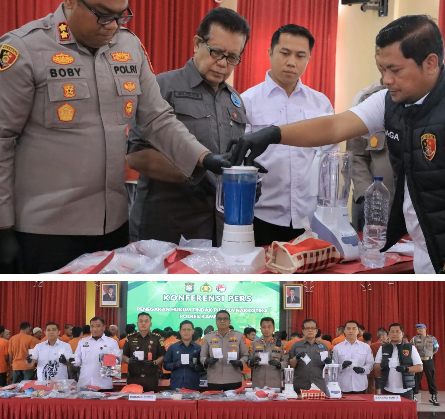 Kegiatan yang digelar di Mapolres Kampar ini dipimpin langsung oleh Kapolres Kampar AKBP Boby Putra Ramadhan, Waka Polres Kampar Kompol Andi Cakra Putra, Kasat Narkoba AKP Markus Sinaga, dan dihadiri oleh perwakilan dari Pengadilan Negeri Kampar, Kejaksaan Negeri Kampar, Penasehat Hukum, dan BNK Kampar.