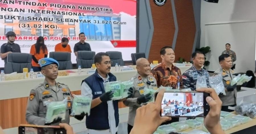 Polda Riau dan Lanal Dumai Gagalkan Peredaran 31,82 Kg Sabu Jaringan Internasional