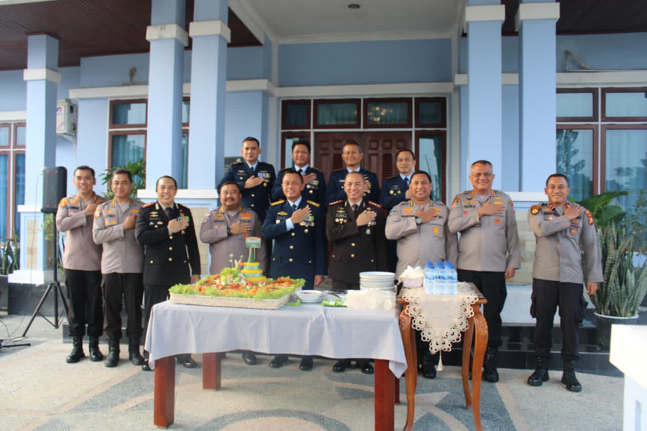 Kegiatan dimulai dengan sambutan hangat dan pemberian ucapan selamat ulang tahun kepada Danlanud Rsn, dilanjutkan dengan pemotongan tumpeng dan sesi foto bersama. Suasana penuh keakraban dan kekeluargaan mewarnai momen tersebut sebagai wujud nyata soliditas TNI–Polri di Provinsi Riau.