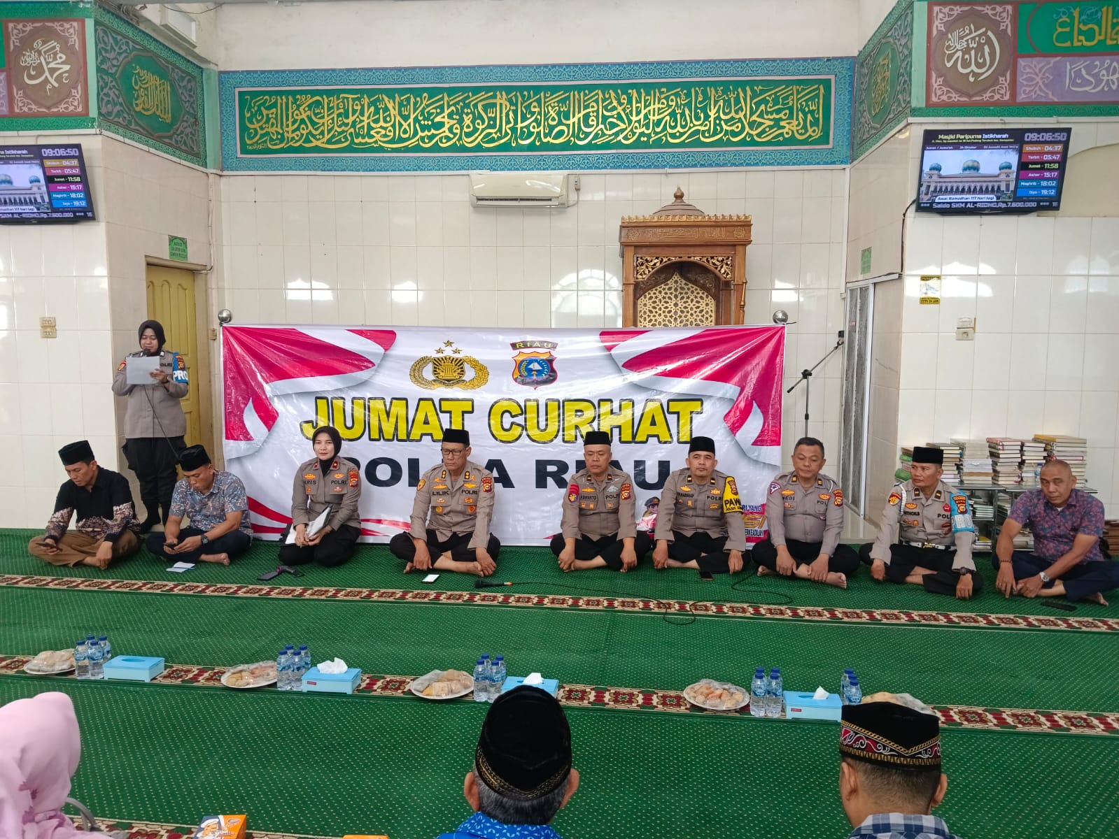 Dalam rangka mempererat silaturahmi dan menampung aspirasi masyarakat, Polda Riau bersama Polresta Pekanbaru menggelar kegiatan Jumat Curhat yang bertempat di Masjid Istiqoroh, Jalan Riau Gang Geliga, Kelurahan Padang Terubuk, Kecamatan Senapelan, Kota Pekanbaru, pada Jumat (24/10/2025) pukul 09.00 WIB.