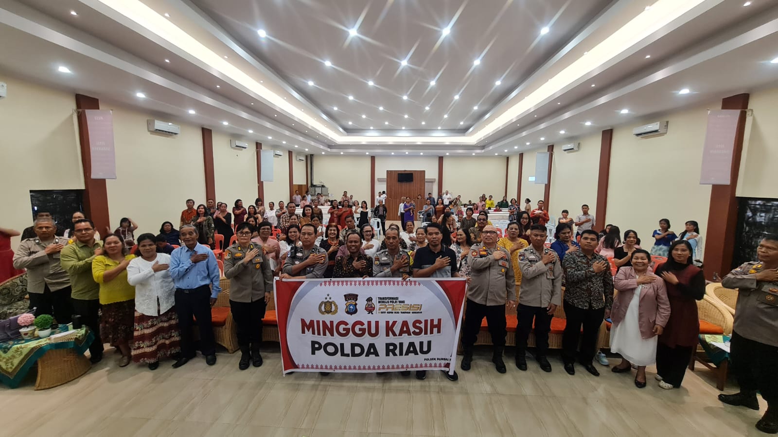 Dalam rangka mempererat hubungan antara kepolisian dan masyarakat, Polda Riau bersama Polsek Rumbai Pesisir melaksanakan kegiatan Minggu Kasih bersama jemaat Gereja GBIS Kristus Gembala yang berlokasi di Jalan Khayangan, Gang Sekolah II, Kelurahan Limbungan Baru, Kecamatan Rumbai, Kota Pekanbaru, Minggu (19/10/2025) pagi.