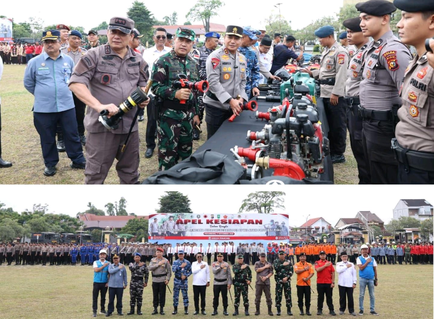 Apel ini dipimpin langsung oleh Kapolda Riau Irjen Pol Dr. Hery Herjawan, S.I.K., M.H., M.Hum., bersama Pangdam XIX/Tuanku Tambusai Mayjen TNI Agus Hadi Waluyo, S.A.P., M.M., CHRMP. Turut hadir Danrem, Danlanud, Danlanal, Ka BNNP, unsur Forkopimda, pejabat utama Polda Riau, Dansat Brimob Polda Riau KBP I Ketut Gede Adi Wibawa, S.I.K., serta BPBD, Basarnas, dan instansi terkait lainnya.