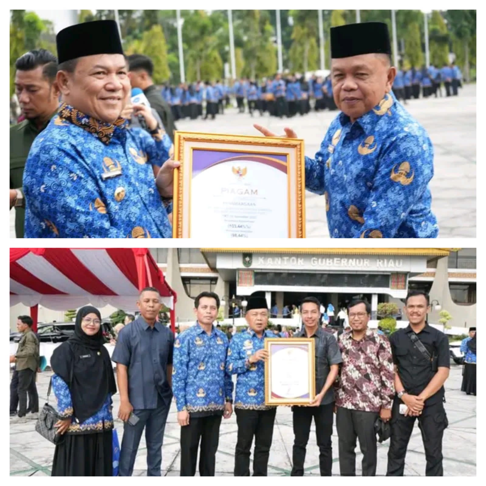 Penghargaan diserahkan Plt. Gubernur Riau, SF Haryanto, kepada Bupati Kepulauan Meranti, AKBP (Purn) H. Asmar, di halaman Kantor Gubernur Riau, Pekanbaru.