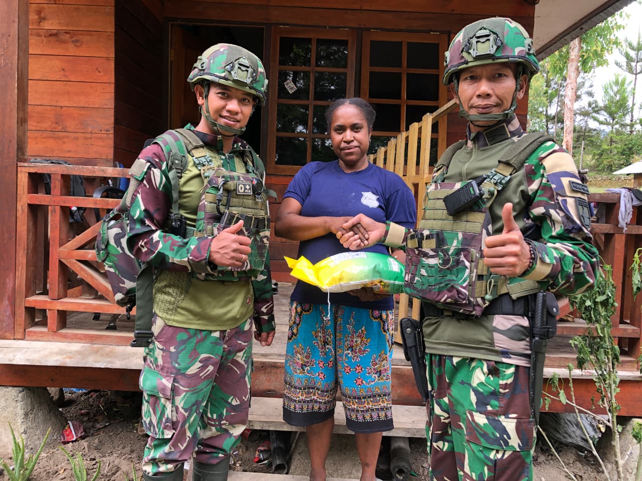 Sebagai wujud kepedulian terhadap masyarakat di wilayah pegunungan yang kerap mengalami keterbatasan pasokan bahan pangan, TNI bagikan paket beras Gratis di wilayah penugasan. (11/11/2025).