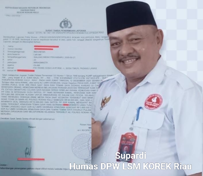 DPW LSM KOREK Riau Sesalkan Sikap Oknum Satpol PP Rohul Terlibat dalam Dugaan Pemerasan, dan Minta APH Menindaklanjuti Laporan Korban