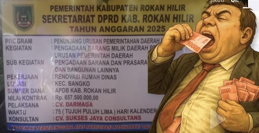 Pemerintah Kabupaten Rokan Hilir melalui Sekretariat DPRD Kabupaten Rokan Hilir mengalokasikan anggaran sebesar Rp 657.500.000 untuk pekerjaan renovasi rumah dinas di Kecamatan Bangko pada tahun anggaran 2025.