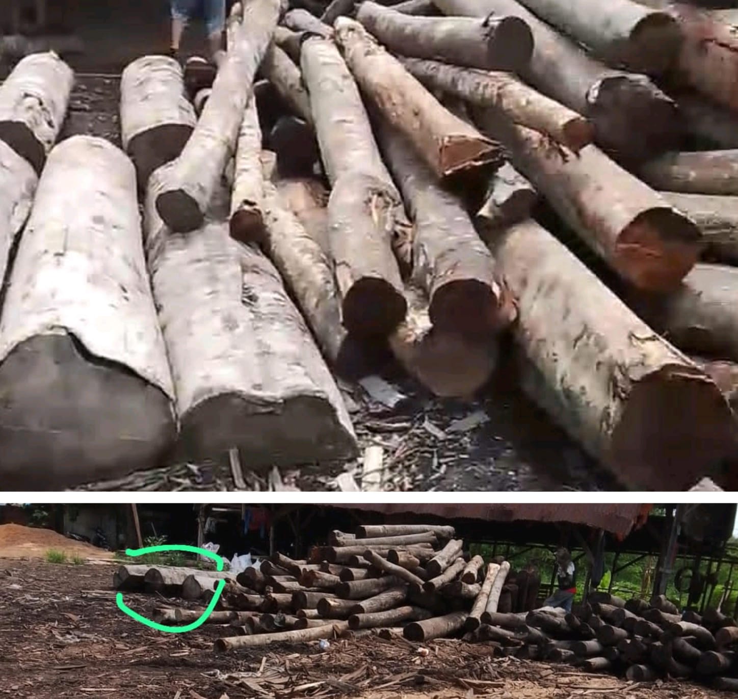 Dari pantauan awak media saat melakukan investigasi di lokasi, tampak dengan jelas kayu-kayu glondongan ukuran besar yang diduga dari hasil Ilegal Logging/ pembalakan liar menumpuk di lokasi dan siap dikelola.