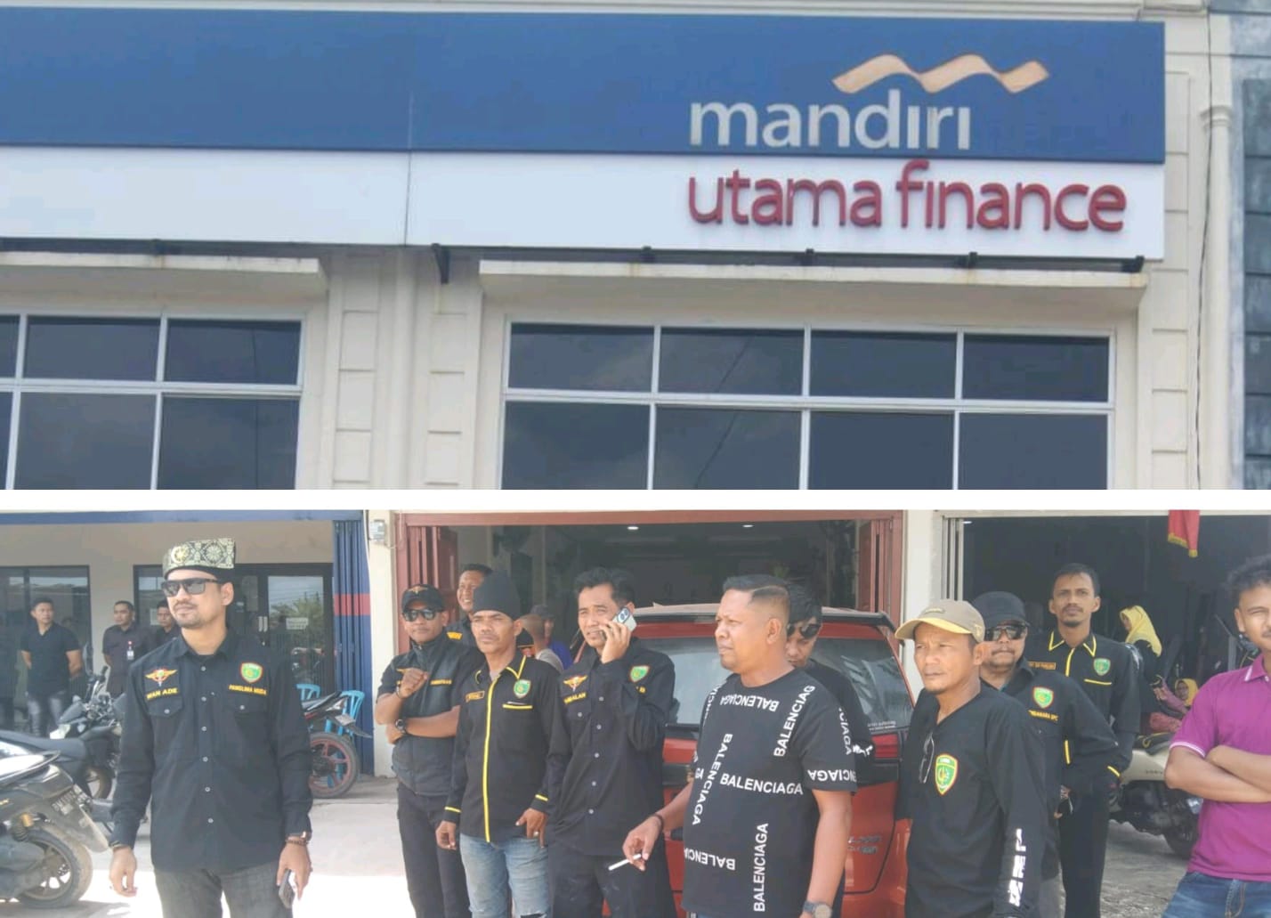 Laskar Hulubalang Melayu Bersatu (LHMB) Kota Dumai mendatangi kantor Mandiri Finance di Jalan Kelakap Tujuh, Senin (08/12/2025), untuk meminta pertanggungjawaban terkait insiden dugaan perampasan kendaraan yang menimpa salah seorang anggota laskar LHMB Dumai.