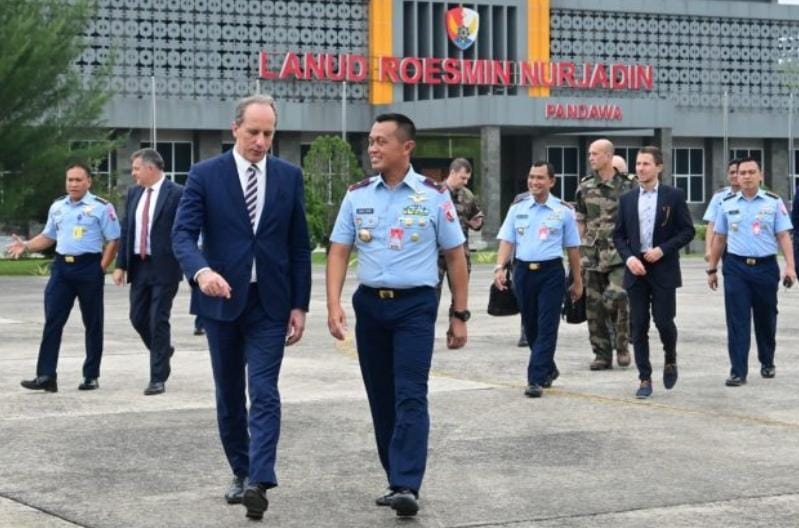 Penerangan Lanud Roesmin Nurjadin kembali menjadi pusat perhatian kerja sama pertahanan Indonesia–Prancis dengan kedatangan Duta Besar Prancis untuk Republik Indonesia, Mr. Fabien Penone, beserta rombongan. Setibanya di Lanud RSN, rombongan disambut langsung oleh Komandan Lanud Roesmin Nurjadin Marsma TNI Abdul Haris, M.M.Pol., M.M.O.A.S., yang kemudian mendampingi Dubes Prancis dalam seluruh rangkaian peninjauan. Kunjungan ini berfokus pada pengecekan kesiapan fasilitas pendukung kedatangan Pesawat Tempur Rafale yang dijadwalkan tiba pada Januari 2026 sebagai bagian dari program modernisasi alutsista TNI AU, Kamis (04/12/2025).