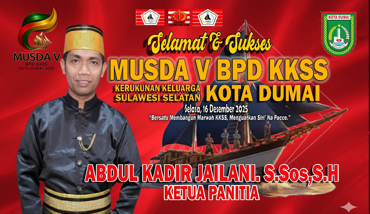 Bertempat di Pendopo Sri Bunga Tanjung, kota Dumai, Musyawarah daerah V (Musda) Badan Pengurus Daerah Kerukunan Keluarga Sulawesi Selatan (BPD-KKSS) Kota Dumai secara resmi menetapkan saudara Ansar, SH Sebagai Ketua terpilih periode 2025-2030, penetapan ini dilakukan melalui Musyawarah dan Mufakat. Selasa (16/12/2025)