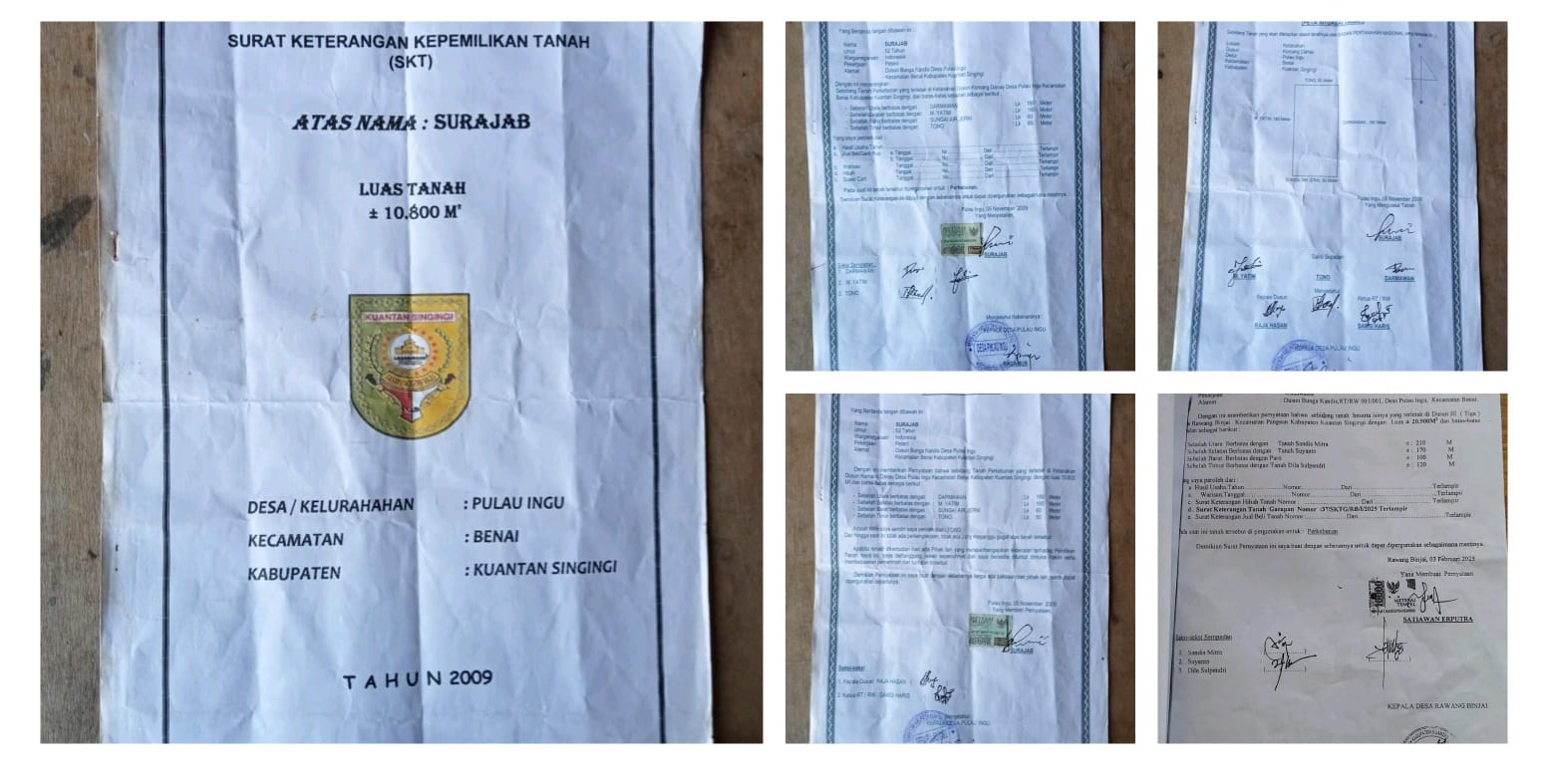 Kepada media ini Ferdi Dinata anak kandung Syafriadi menyampaikan bahwa Syapriadi yang berdomisili di Desa Pelangiran, Kecamatan Pelangiran, Kabupaten Indragiri Hilir (Inhil), membeli dua bidang tanah di Desa Pulau Ingu, Kecamatan Benai, Kuansing pada tahun 2016–2017. Masing-masing bidang seluas ±1 hektare dibeli dari Surajab dan Iqbal, warga Desa Pulau Ingu.
