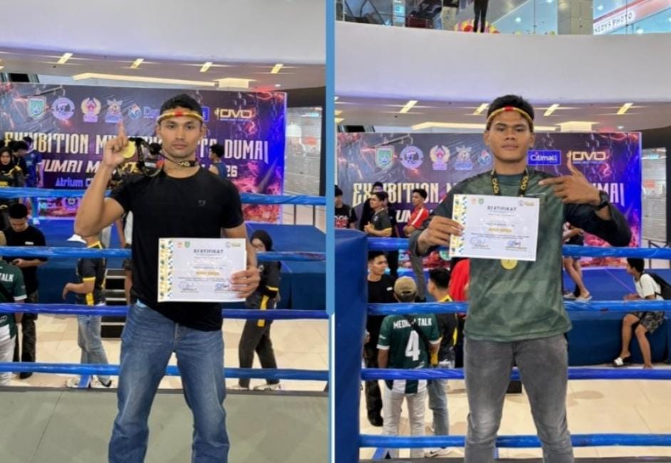 🇲🇨✌️Mentengnews.comDumai: Dua personel Brimob Batalyon C Pelopor, Briptu Aqil Jamik Harahap dan Bripda Binsar Martogi Samosir, berhasil menjuarai Kejuaraan Dumai Muaythai Open di Kota Dumai. (25/1/2026)