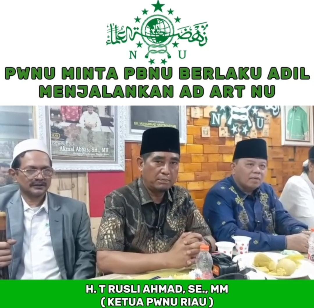🇲🇨✌️Mentengnews.com – Pekanbaru: Ketua Pengurus Wilayah Nahdlatul Ulama (PWNU) Riau Periode 2021-2026, H. T. Rusli Ahmad, SE.,MM., minta Pengurus Besar Nahdlatul Ulama (PWNU) berlaku adil dalam menjalankan Anggaran Dasar Anggaran Rumah Tangga (AD/ART) Nahdlatul Ulama (NU). Jumat (2/1/2026)