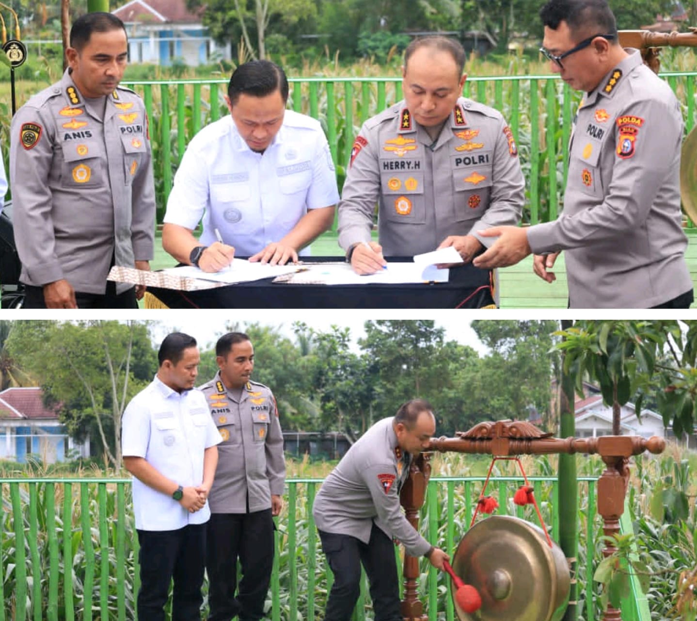 Peresmian program ditandai dengan pemukulan gong oleh Kapolda Riau sebagai simbol dimulainya Tabung Harmoni Hijau, serta penandatanganan kerja sama pemanfaatan lahan antara Pemerintah Kota Pekanbaru dan Polda Riau. Dalam kesempatan tersebut, Wali Kota Pekanbaru Agung Nugroho secara resmi memberikan pinjam pakai lahan kepada Polda Riau sebagai lokasi pengembangan program.