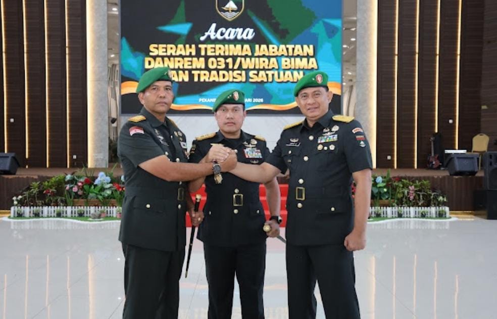 🇲🇨✌️Mentengnews.comPekanbaru: Panglima Komando Daerah Militer (Pangdam) XIX/Tuanku Tambusai Mayjen TNI Dr. Agus Hadi Waluyo, memimpin upacara Serah Terima Jabatan (Sertijab) Komandan Resor Militer (Danrem) 031/Wira Bima dari Brigjen TNI Jarot Suprihanto kepada Brigjen TNI Dr. Agustatius Sitepu, Selasa (20/01/2026).