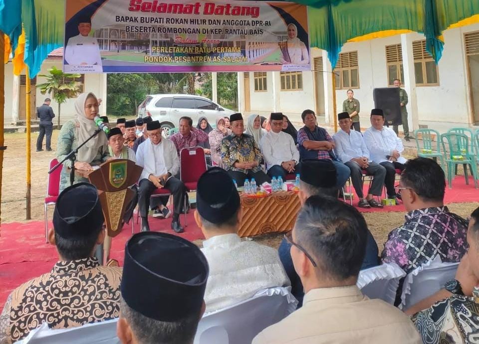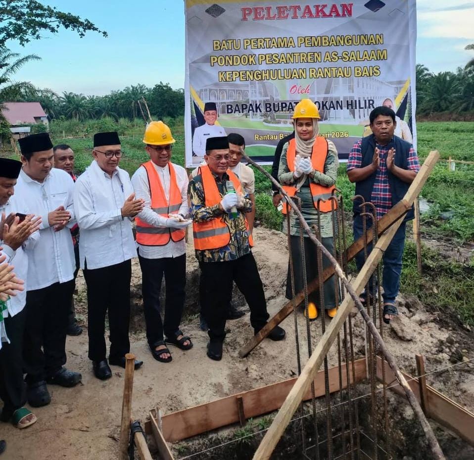 🇮🇩✌️Mentengnews.com – Rantau Bais – Rokan Hilir, Riau – Bupati Haji Bistamam bersama Anggota DPR-RI Karmila Sari menghadiri acara peletakan batu pertama pembangunan Pondok Pesantren As Salaam di Kepenghuluan Rantau Bais, Kabupaten Rokan Hilir, Provinsi Riau pada hari Sabtu, 7 Februari 2026.