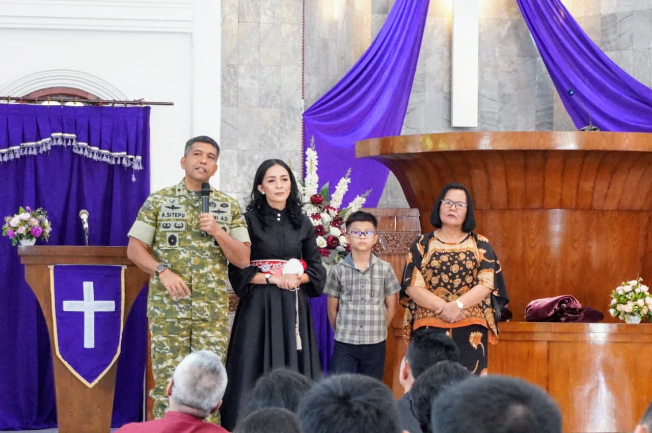 Dalam sambutannya, Brigjen TNI Dr Agustatius Sitepu, S.Sos., M.Si., M.Han menegaskan pentingnya sinergi antara TNI dan seluruh elemen masyarakat, termasuk tokoh agama dan jemaat gereja, dalam menciptakan suasana aman, damai, dan harmonis di tengah keberagaman.
