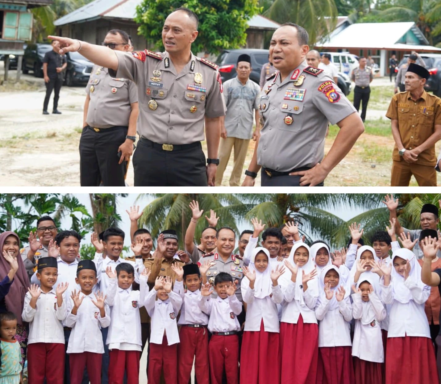 Tak hanya melakukan peninjauan fisik, Kapolda juga menunjukkan kepedulian terhadap dunia pendidikan dengan membagikan buku kepada para siswa yang hadir.