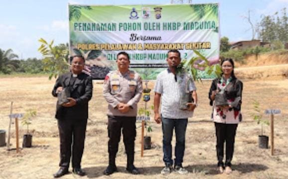 🇮🇩✌️Mentengnews.com – Pelalawan: Pangkalan Kerinci, Riau – Gereja HKBP Maduma bersama Polres Pelalawan dan masyarakat sekitar melaksanakan penanaman pohon di lahan HKBP Maduma Jl. Koridor KM 2 Pangkalan Kerinci pada Sabtu (21/2/2026). Acara ini merupakan bagian dari program Green Policing yang digagas oleh Polda Riau.