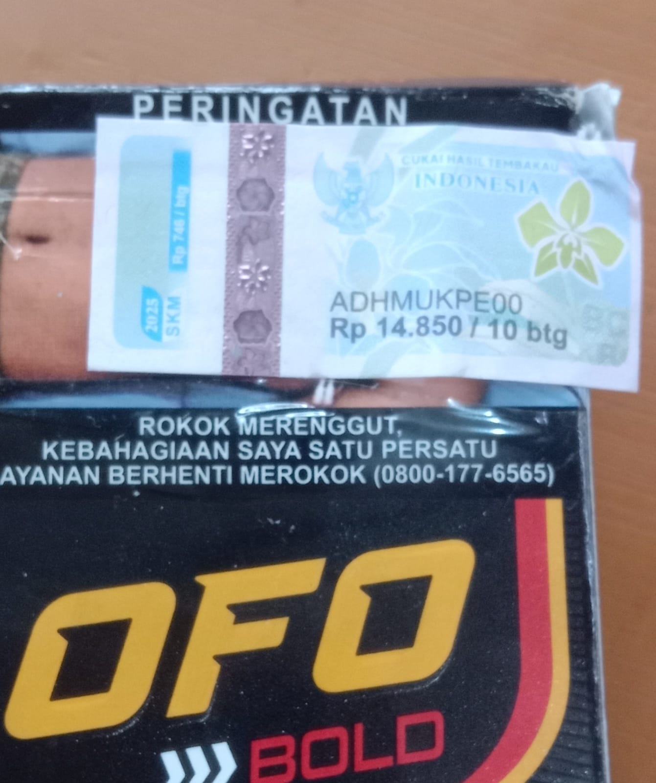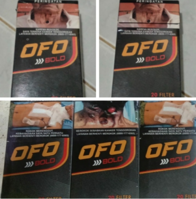 Produk rokok merek OFO BOLD yang ditemukan di lapangan memperlihatkan pita cukai dengan keterangan isi 10 batang, namun saat dibuka berisi 20 batang per bungkus.