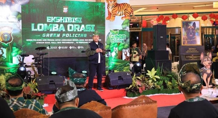 Mentengnews.comPekanbaru: Polda Riau telah menyelesaikan Ekshibisi Lomba Orasi Green Policing 2026, agenda puncak diselenggarakan di Atrium Mal SKA Pekanbaru, Minggu (15/2/2026) dengan tema ‘Aksi Pemuda untuk Lingkungan Bersih, Aman, dan Berkelanjutan’.