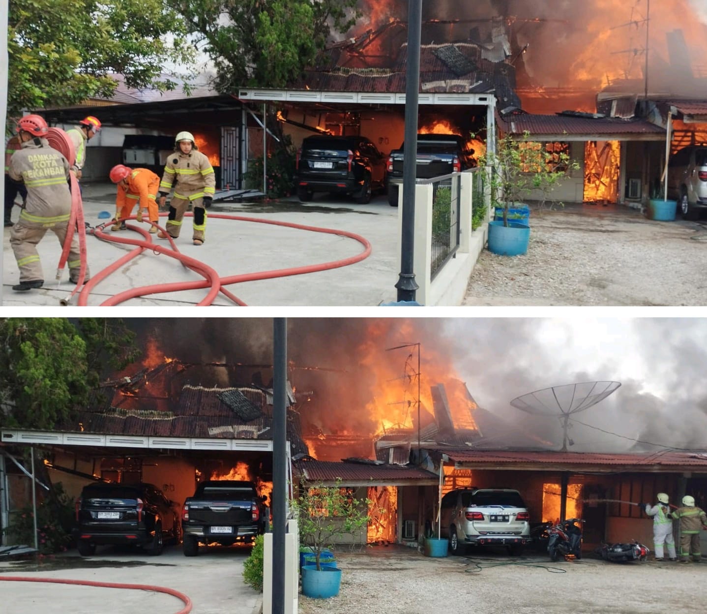 🇮🇩✌️Mentengnews.com – Pekanbaru: Kebakaran hebat melanda rumah dinas Perwira Polisi di Jalan Sisingamangaraja, Kecamatan Lima Puluh, tepat di seberang Hotel Resti Menara, Rabu (25/2/2026) sekitar pukul 15.50 WIB.