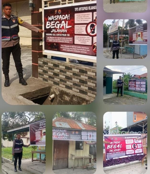 Waspada Begal Jalanan, Polsek Bukitraya Pasang Spanduk Himbauan dan Masifkan Sosialisasi Call Center Polri 110.