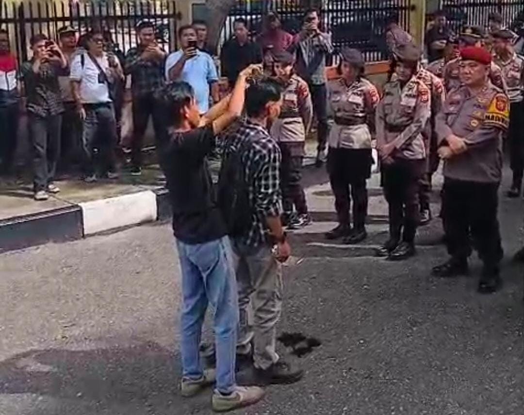Foto: Demo Korban pengeroyokan dkk, menuntut keadilan untuk penetapan status hukum tersangka pelaku pengeroyokan beberapa waktu yang lalu di samping Mapolda Riau