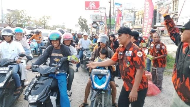 🇮🇩✌️Mentengnews.com – Pekanbaru: Dalam rangka menyemarakkan bulan suci Ramadhan, Dankoti MPC Kota Pekanbaru bung Syafrizal bersama Unit I Koti Pemuda Pancasila Kota Pekanbaru bung Edtris menggelar kegiatan sosial dengan membagikan takjil kepada Masyarakat dan para pengguna Jalan di Simpang Tabek Gadang, Panam, Kamis (05/03/2026) menjelang waktu berbuka puasa.