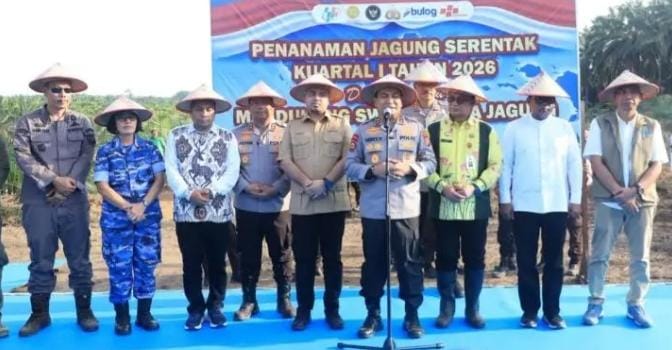 🇮🇩✌️Mentengnews.comPelalawan: Kapolda Riau, Dr. Irjen Pol Herry Heryawan S.I.K, MH. M.Hum pada Sabtu, (07/3/2026) melakukan penanaman jagung serentak kuartal I tahun 2026 dalam rangka Mendukung Swasembada Jagung dengan melibatkan KUD Sialang Makmur, Desa Sialang Indah, Kecamatan Pangkalan Kuras, Pelalawan.
