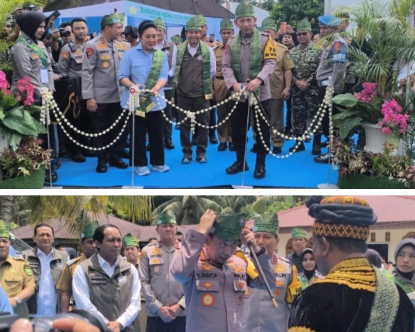 🇮🇩✌️Mentengnews.com – Tambang – Kampar: Kapolri Jenderal Polisi Listyo Sigit Prabowo bersama Ketua Komisi IV DPR RI Siti Hediati Hariyadi atau Titiek Soeharto hingga Menhut Raja Juli Antoni, hari ini meresmikan dan melakukan groundbreaking 110 Jembatan Merah Putih Presisi yang tersebar di wilayah Provinsi Riau. Keberadaan jembatan ini diharapkan memperlancar mobilitas masyarakat serta meningkatkan perekonomian daerah.