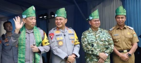 Kedatangan Kapolri beserta rombongan disambut oleh Kapolda Riau Irjen Pol Herry Heryawan, S.I.K., M.H., M.Hum., Kasdam XIX/Tuanku Tambusai Brigjen TNI Rudi Hermawan, S.E., M.M., Wakapolda Riau, Bupati Kampar, Dandim 0313/KPR, Kapolres Kampar, serta tokoh adat dan masyarakat setempat.