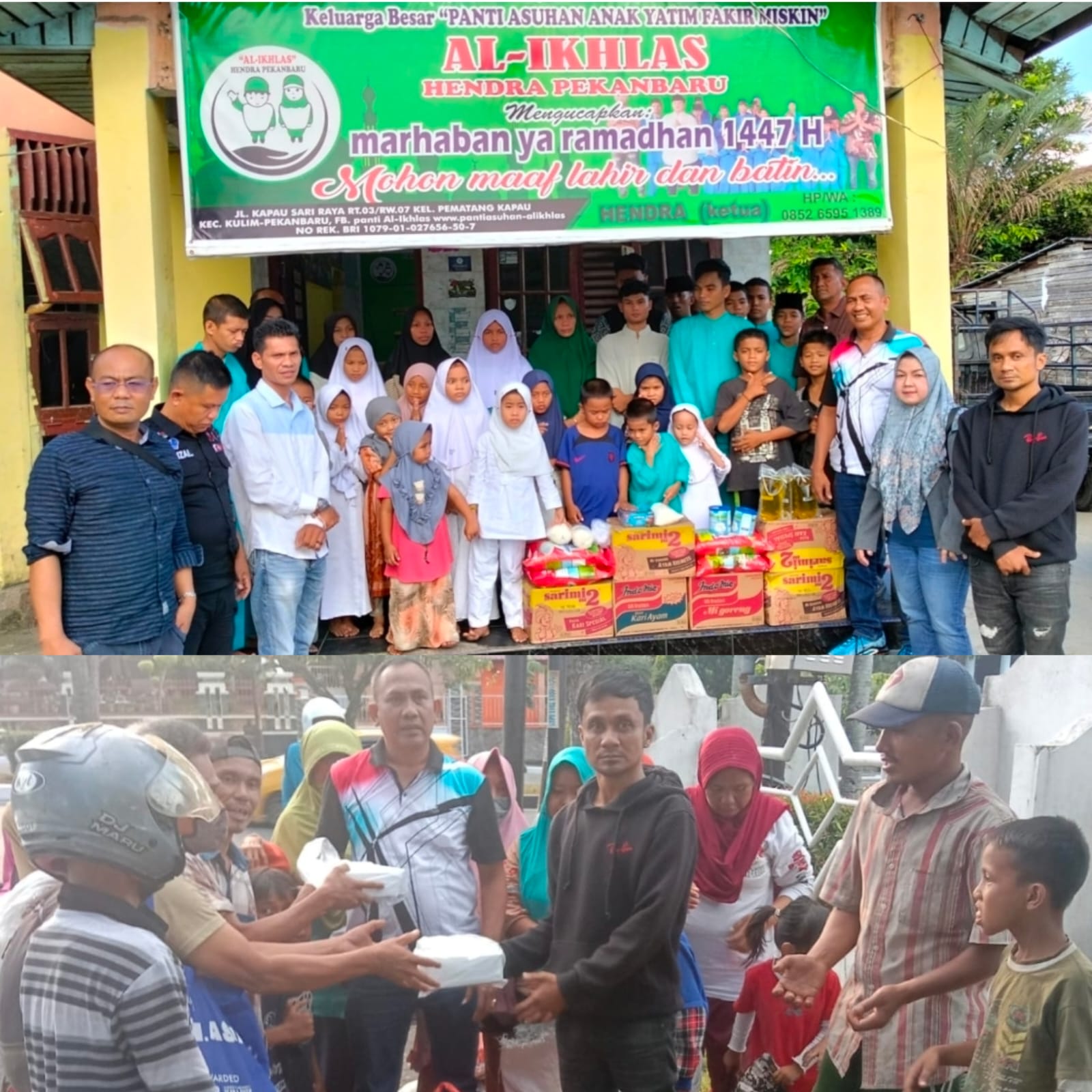 🇮🇩✌️Mentengnews.com – Pekanbaru: Pimpinan Redaksi Media Online (MO) Fakta Wicara, Jasril Rz bersama seluruh pengurus, memberikan paket paket Sembako ke Panti Asuhan Al- Ikhlas yang berada di Jalan Kapau Sari Raya, RT. 03/ RW. 07. Kelurahan Pematang Kapau, Kecamatan Kulim, Kota Pekanbaru.