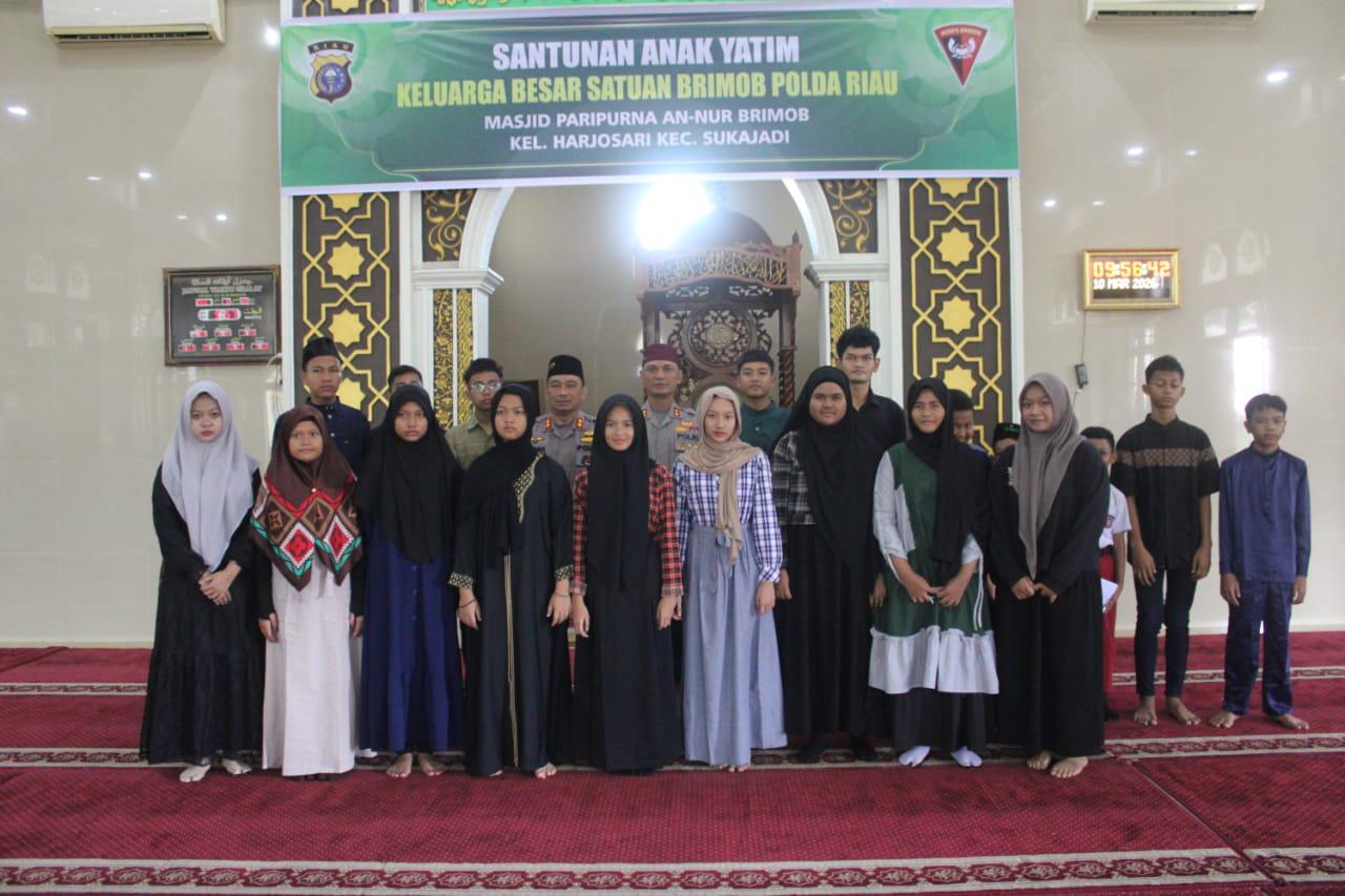 santunan tersebut merupakan bentuk kepedulian serta perhatian dari keluarga besar Brimob kepada anak-anak yatim yang berada di lingkungan Satuan Brimob Polda Riau.