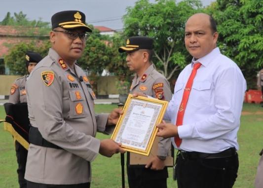 Sebelum penyerahan penghargaan ini terlebih dahulu dibacakan Surat Keputusan Kapolres Kampar tentang nama-nama penerima penghargaan ini, selanjutnya para penerima penghargaan maju ke depan Inspektur Upacara dan menerima piagam penghargaan dari Kapolres Kampar.