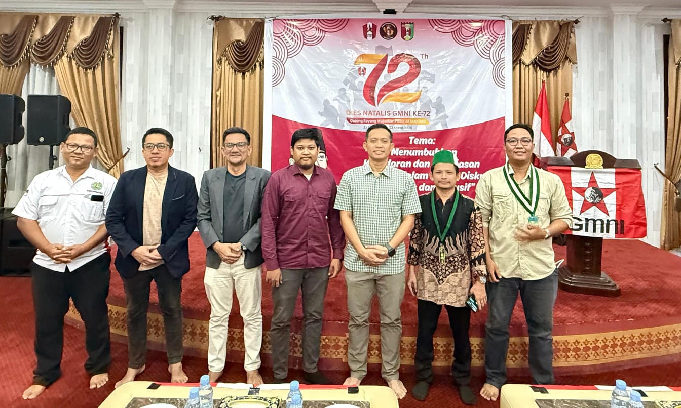 🇮🇩✌️Mentengnews.comPekanbaru,_ Gerakan Mahasiswa Nasional Indonesia (GMNI) Riau memperingati Dies Natalis ke-72 dengan menggelar kegiatan bertajuk kebangsaan yang sarat pesan demokrasi dan isu strategis daerah. Kegiatan yang mengusung tema “Menumbuhkan Kesadaran dan Kebebasan Demokrasi dalam Ruang Diskusi yang Kritis dan Inklusif” ini berlangsung di rumah dinas Ketua DPRD Provinsi Riau, Jalan Sisingamangaraja, Pekanbaru, Kamis (23/4/2026) malam.