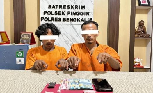 🇮🇩✌️Mentengnews.com – Bengkalis: Jajaran Polsek Pinggir kembali mengungkap kasus peredaran narkotika jenis sabu di wilayah Desa Buluh Apo, Kecamatan Pinggir, Kabupaten Bengkalis. Dalam penggerebekan tersebut, dua pria berinisial E.S (32) dan F.P (25) berhasil diamankan bersama barang bukti sabu seberat total sekitar ±5,75 gram, pada Kamis, 23 April 2026.