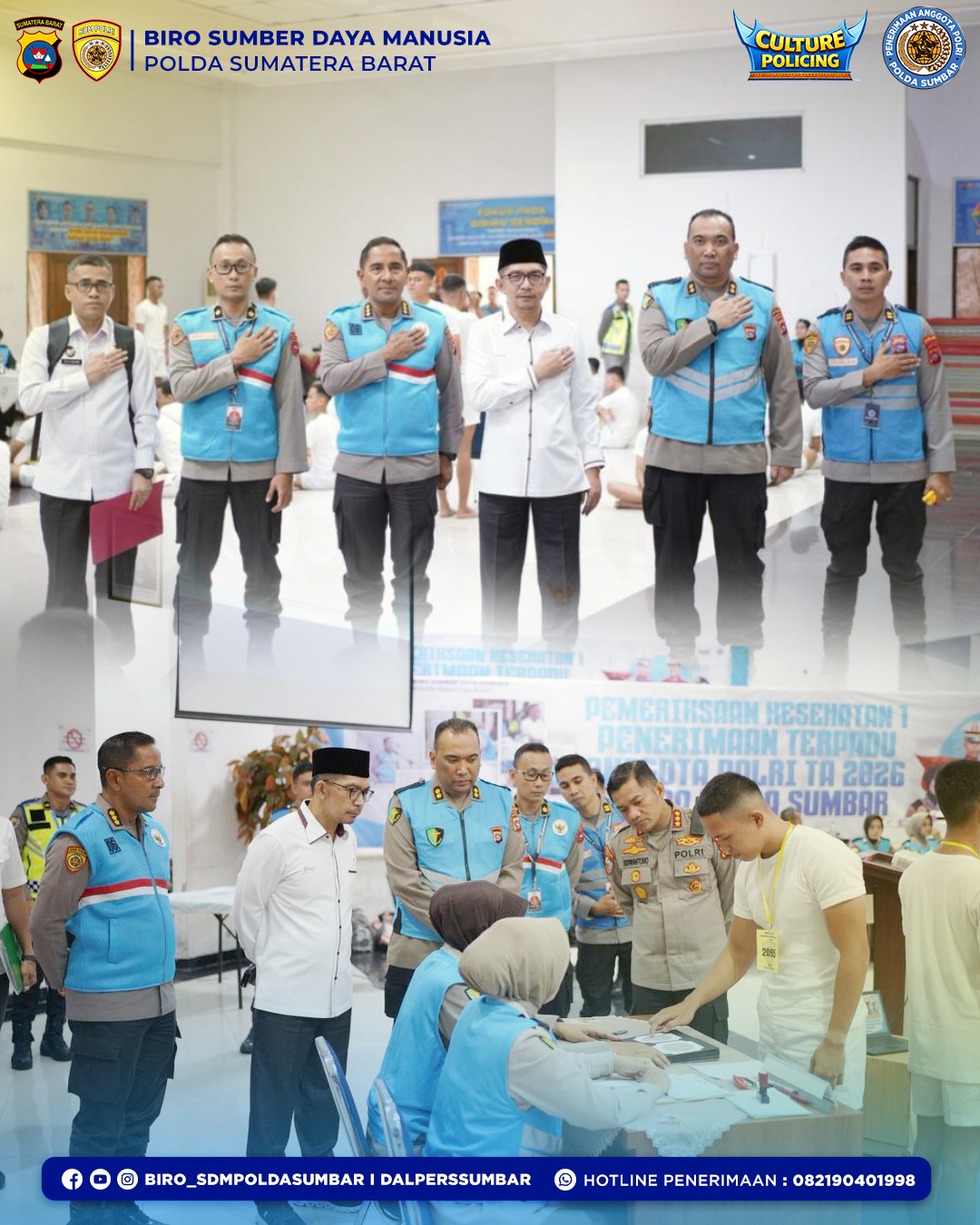 Selanjutnya, Tim melanjutkan agenda dengan meninjau secara langsung pelaksanaan pemeriksaan kesehatan tahap I dalam rangka penerimaan Bintara Polri Tahun Anggaran 2026 yang dilakukan di ruang Jenderal Polisi (Purn) Awaloedin Djamin yang berada di lantai 3 Gedung Ditsamapta Polda Sumbar,