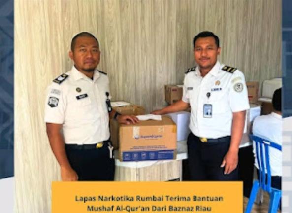 Kepala Lapas (Kalapas) Narkotika Rumbai, Reinhards Indra Pitoy, mengungkapkan mushaf Al-Qur’an tersebut nantinya dipergunakan untuk peningkatan pembinaan kerohanian Warga Binaan Pemasyarakatan (WBP) Muslim di Lapas Narkotika Rumbai untuk meningkatkan amal ibadah mereka selama menjalani masa pidana di Lapas.