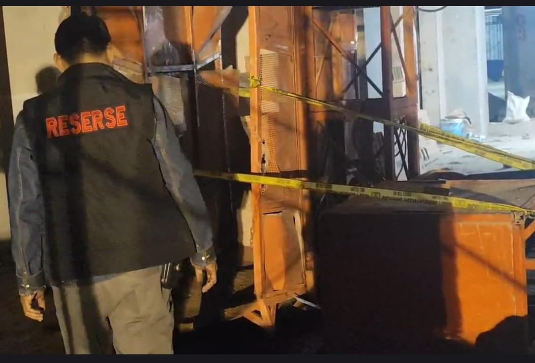 Insiden nahas itu melibatkan lift pengangkut material yang tiba-tiba jatuh bebas saat digunakan oleh tiga pekerja.