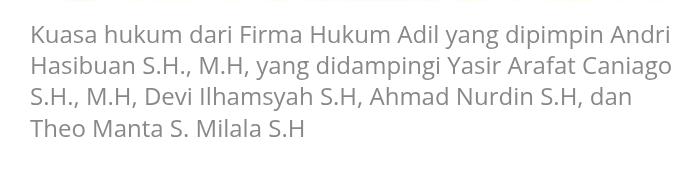 Kuasa hukum dari Firma Hukum Adil yang dipimpin Andri Hasibuan S.H., M.H, yang didampingi Yasir Arafat Caniago S.H., M.H, Devi Ilhamsyah S.H, Ahmad Nurdin S.H, dan Theo Manta S. Milala S.H menjelaskan jika saat ini ditengah upaya perjuangan untuk mempertahankan hak tanah ulayat Persukuan Melayu Rantau Kasai, tekanan terhadap masyarakat adat disebut semakin nyata dan Masif dilakukan, Ujar Andri.