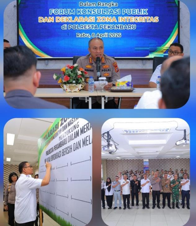 🇮🇩✌️Mentengnews.comPekanbaru: Polresta Pekanbaru menggelar Forum Konsultasi Publik Tahun 2026 yang dirangkaikan dengan Deklarasi Zona Integritas menuju Wilayah Birokrasi Bersih dan Melayani (WBBM), bertempat di Aula Zapin Polresta Pekanbaru, Kamis (8/4/2026).