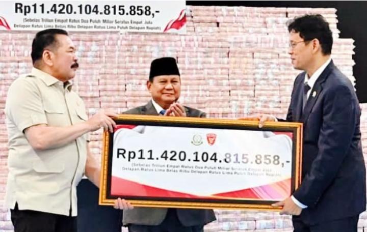 Dalam kesempatan tersebut, pemerintah menyerahkan denda administratif dan hasil penyelamatan keuangan negara dengan total nilai mencapai Rp11.420.104.815.858.