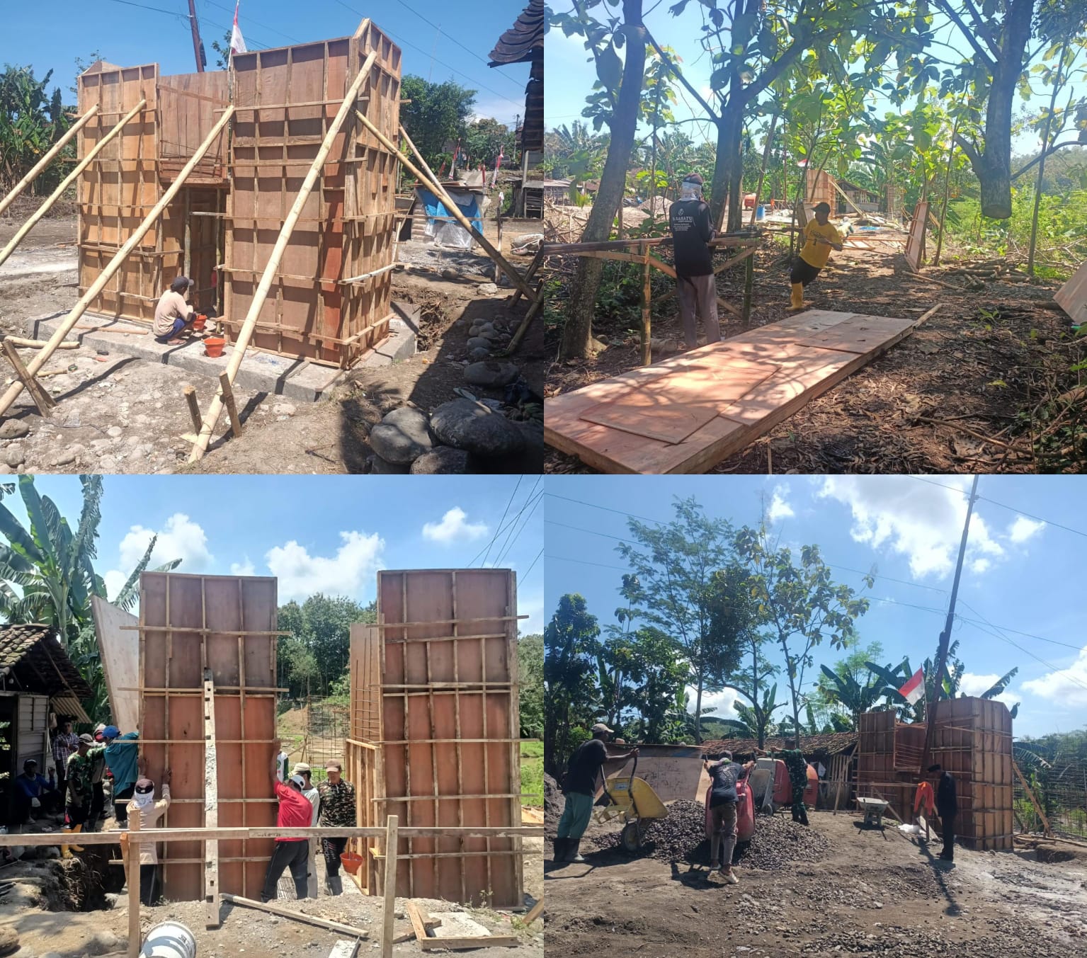Di lapangan, para pekerja terlihat teliti merakit dan memasang papan bekisting yang diperkuat dengan penyangga bambu. Proses ini dilakukan secara gotong royong dan penuh kehati-hatian, agar hasil pengecoran nantinya dapat maksimal dan sesuai dengan standar konstruksi yang telah direncanakan.